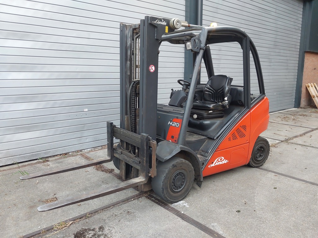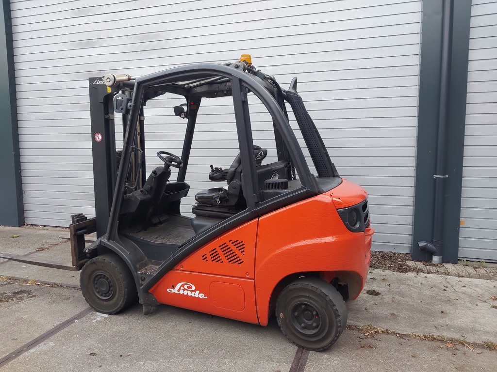 Zeer nette en goede Linde 2.0 ton diesel heftruck.triplomast 480cm hoog en met sideshift en freelift!!Weinig uren maar 6214 uur!!Nette banden.Lepels 120cm lang!Foto’s spreken voor zich!bouwjaar 2010!!