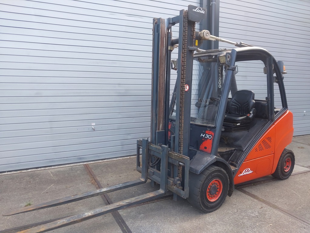 Zeer nette Linde H30D heftruck. met zeer weinig uren maar 5476 uur!! zeer handige doorkijk mast om goed zicht op de lepels te hebben. Zeer goede staat! Masthoogte 245 en sideshift en 365m hefhoogte. lepels zijn 180cm lang.